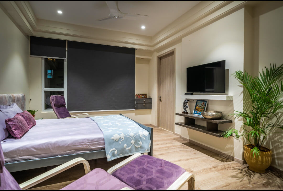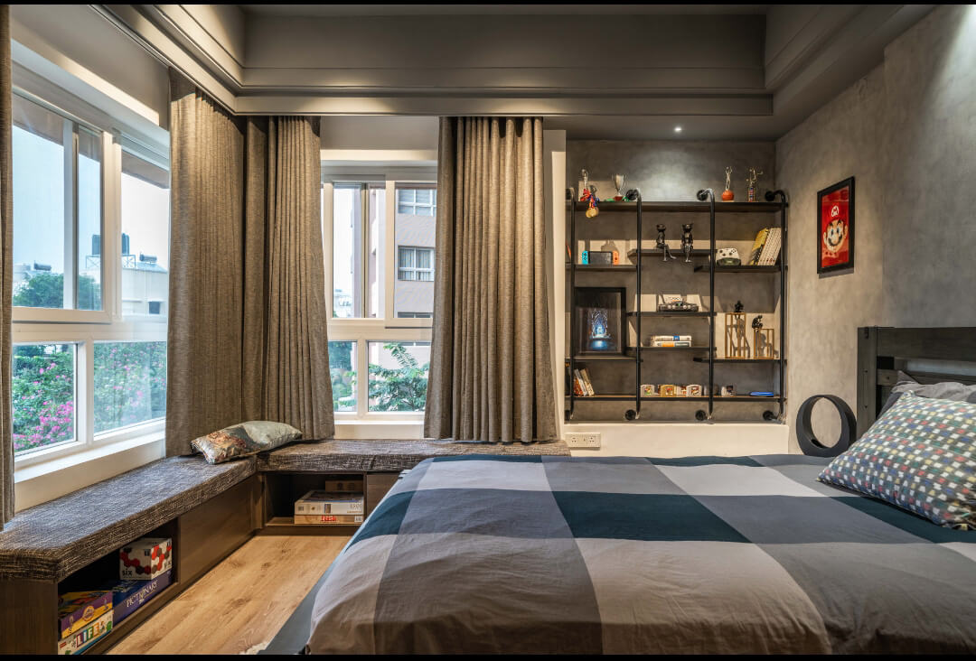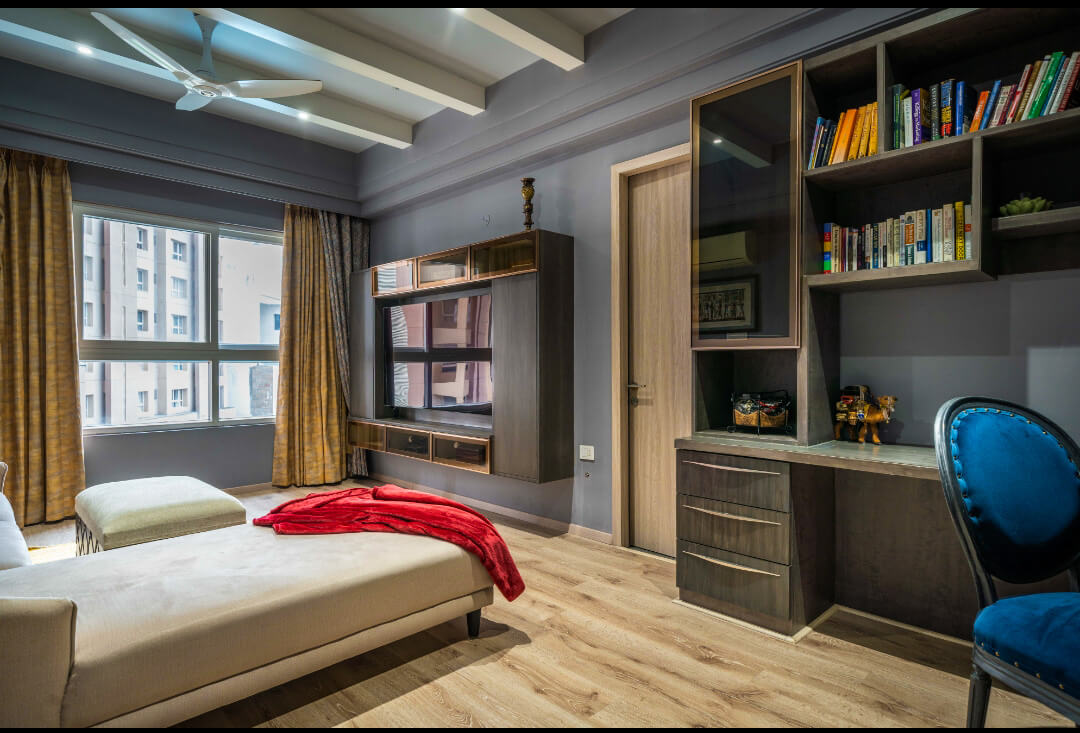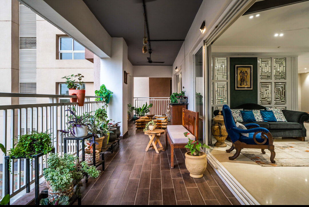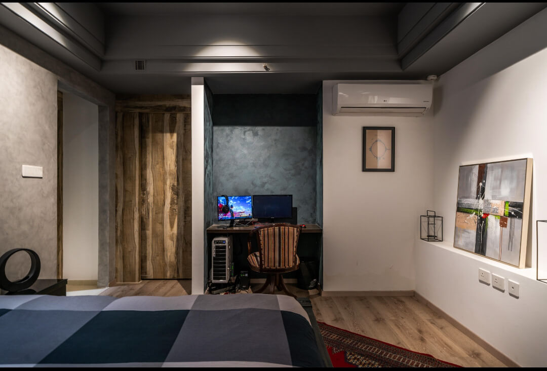 The master bed perfectly captured the outdoors to indoors connect, while one of the other rooms was given a customized vintage industrial barn door, for a dramatic entrance. The grey curtains in the dining area symbolized a revival of retro style with an eclectic blend, and wholly beige color walls complemented with vintage blue upholstery, the whites brought in a much needed openness to the spaces. We made sure that we played with texture and symmetry all around to create this slice of perfection.